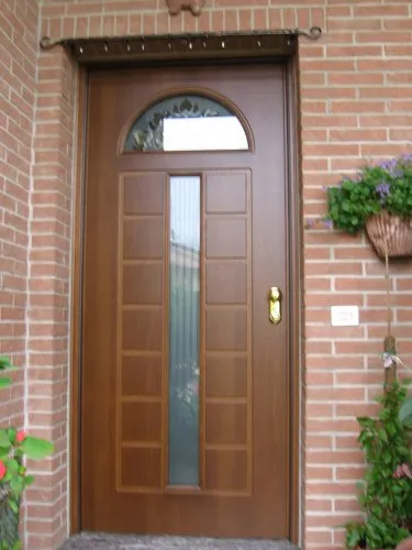 Disponibile in diverse tipologie di apertura – a 1 anta, 2 ante, con fianco luce fisso o sopraluce fisso – si adatta a ogni esigenza abitativa. Le finiture comprendono RAL standard o personalizzati, oltre a varianti in legno tinto, così da armonizzarsi perfettamente con lo stile della facciata.