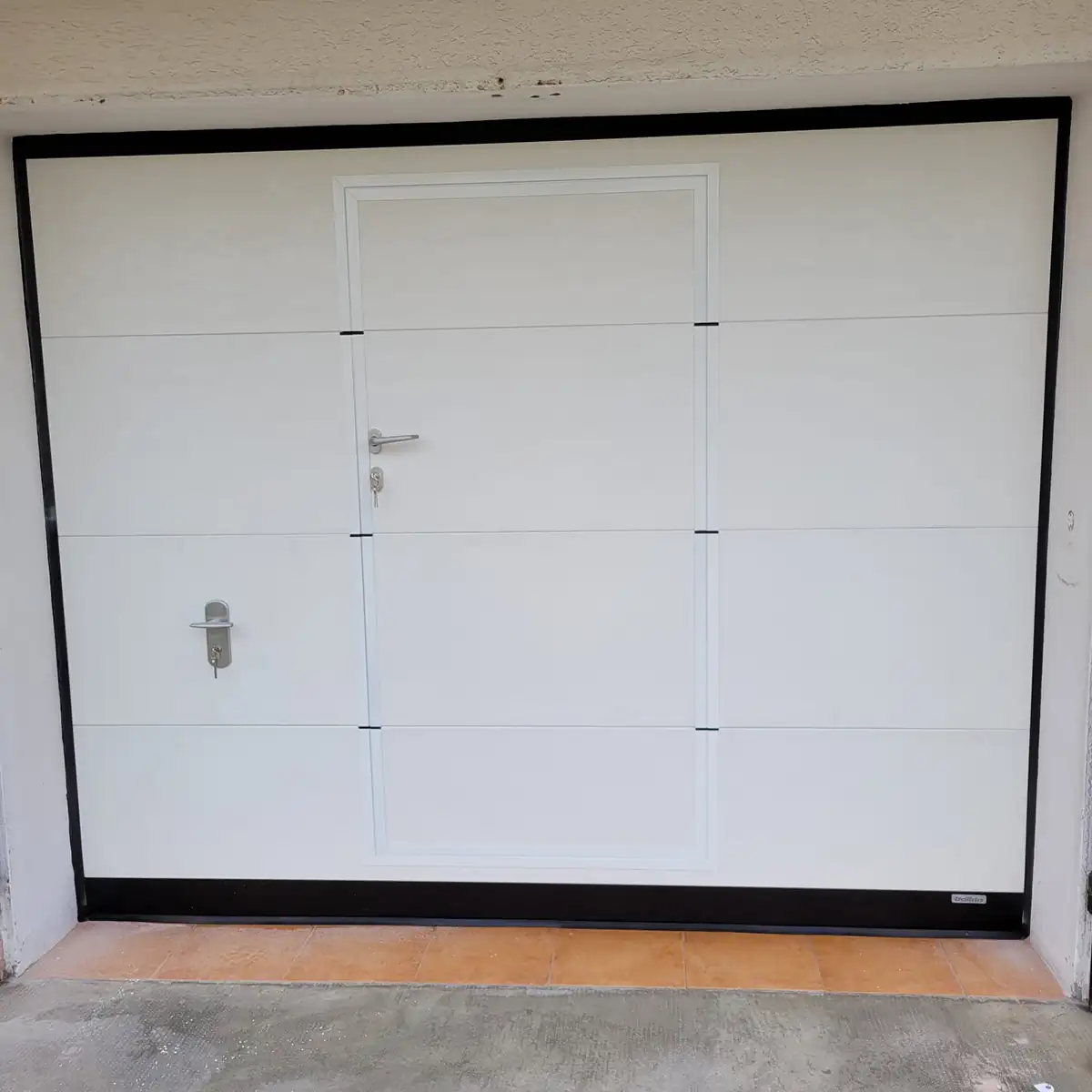 La porta sezionale con portina pedonale è una configurazione progettata per chi utilizza il garage non solo per l'auto, ma anche come passaggio frequente per biciclette o pedoni.